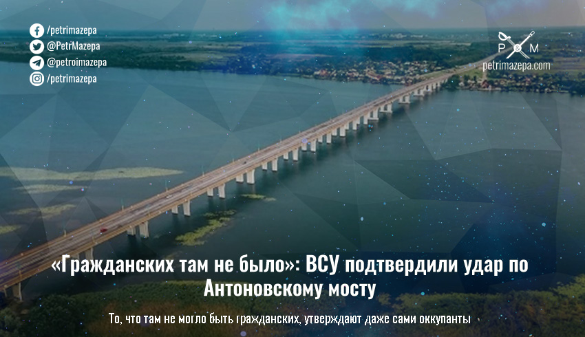 «Гражданских там не было»: ВСУ подтвердили удар по Антоновскому мосту