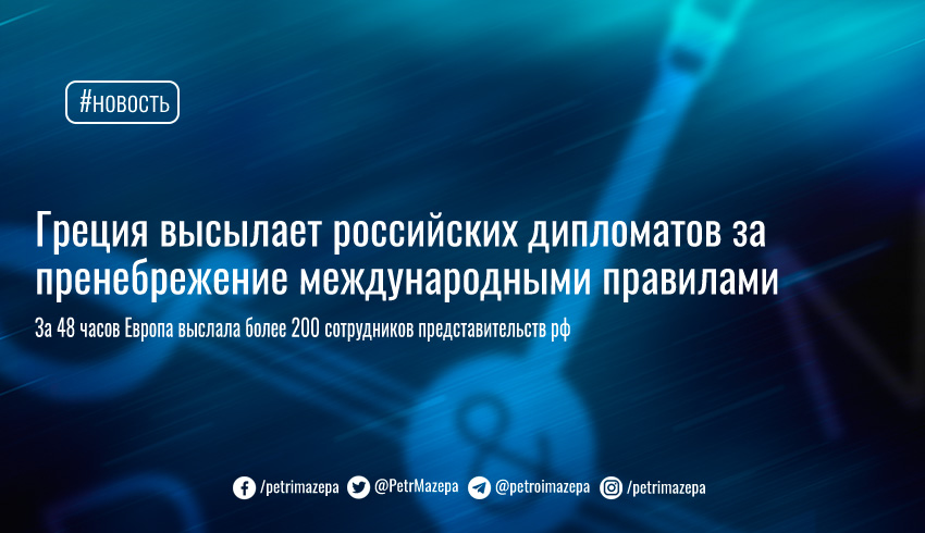 Афины заявили о высылке 12 сотрудников дипломатических и консульских представительств рф. За 48 часов Европа выслала более 200 российских дипломатов.
