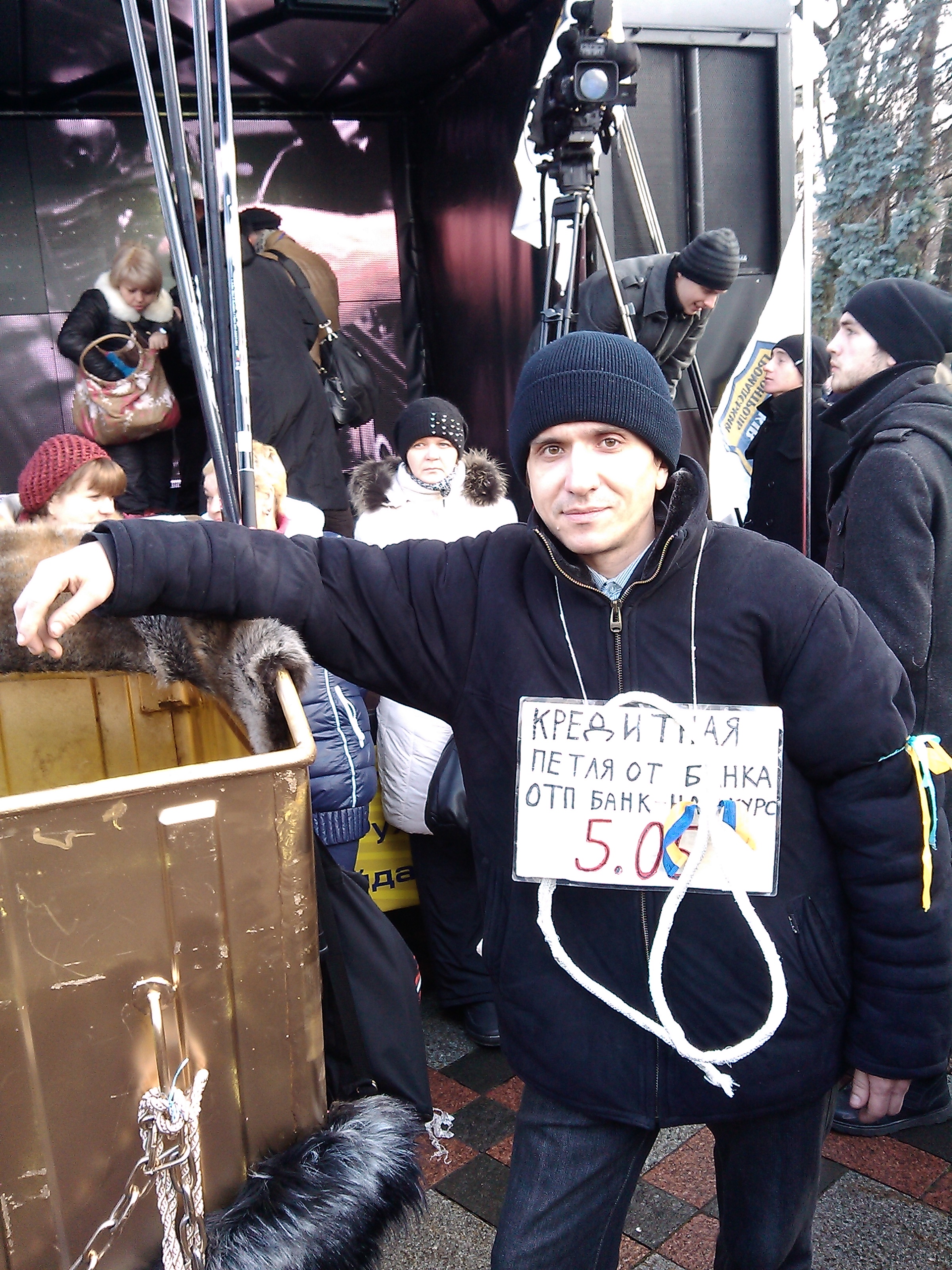 - Когда мы брали кредит в 2007-2008 годах, доллар был по 5 грн. Сейчас он стоит 20 грн. Люди брали кредит с учетом зарплат. Не вина людей, что страну разворовали. Банки – это мошеннические организации, которые обманули всех вкладчиков при помощи правительства. Сейчас мы требуем помощи. Мы не виноваты, что не можем платить кредиты. Произошло уже 10 самоубийств, людей выгоняют из домов. Правительство ничего не делает и не идет на уступки. Мы просим пересчитать кредиты на момент курса их взятия, как делали в других странах. Нет таких сумасшедших процентных ставок ни в одной стране. Мы не просим их простить кредит, мы просим их пересчитать на нормальных условиях.