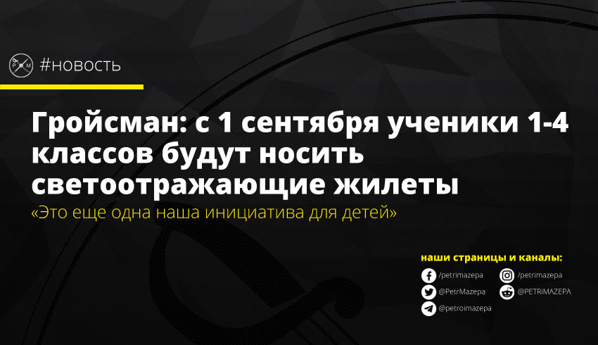 На общественном обсуждении правительственной инициативы «Чужих детей не бывает» премьер-министр заявил, что «С 1 сентября, 1-4 классы все ученики должны быть со спецжилетами, которые дадут возможность ребенку быть заметным в темное время суток. Нужно создать систему защиты детей. Вопрос безопасности на дорогах тут имеет важнейшее значение», - сообщает «Урядовий портал».