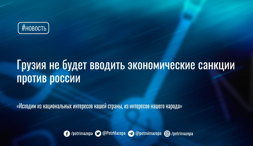 «Еще раз хочу пояснить. Введения экономических санкции со стороны Грузии в отношении россии не будет. Мы, наша команда, исходим из национальных интересов нашей страны, из интересов нашего народа», - сказал Гарибашвили, сообщает «Новости-Грузия».