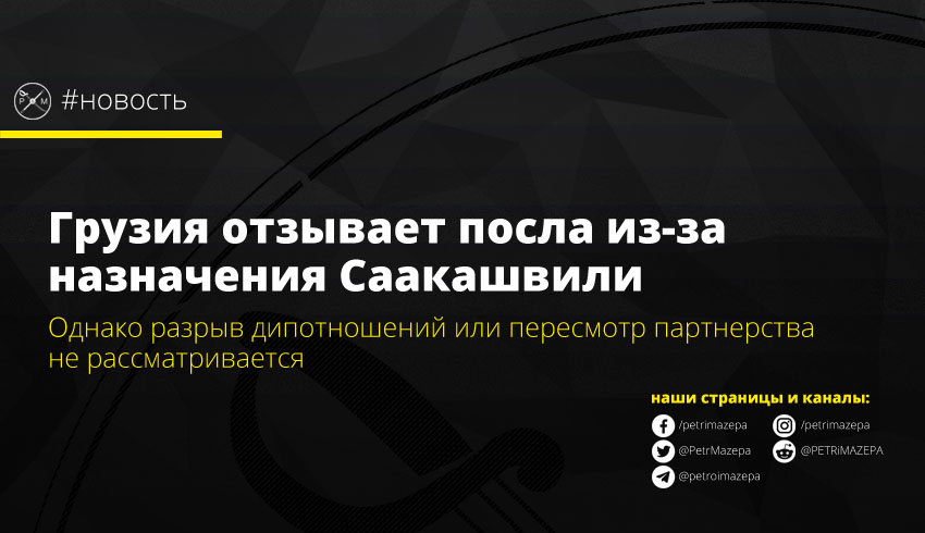Грузия отзывает для консультаций своего посла в Киеве. Причина такого решения – назначение на должность главы Исполнительного комитета реформ при президенте Украины Михеила Саакашвили. Однако это не означает разрыв дипломатических отношений или пересмотр стратегического партнерства, просто указывает на возникновение «определенных проблем в отношениях».
