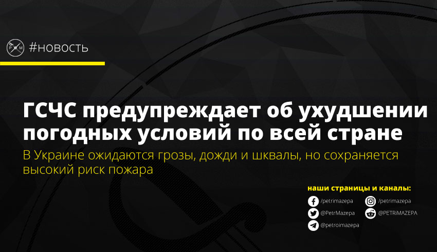Государственная служба Украины по чрезвычайным ситуациям предупредила об ухудшении погодных условий – по данным УкрГидрометцентра по всей стране ожидаются грозы, в центральных и западных областях со шквалами до 20м/с, в Карпатах серьезные дожди.