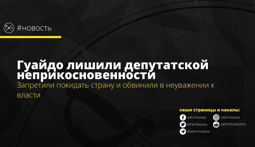 Суд запретил лидеру оппозиции покидать страну без разрешения и признал его виновным в неуважении к власти. По решению Верховного суда также были заблокированы счета Хуана Гуайдо на венесуэльской территории. В связи с лишением депутатской неприкосновенности Гуайдо грозит задержание, передает Deutsche Welle. Соответствующее решение было необходимо Верховному суду, чтобы продолжить судебное разбирательства по делу оппозиционера Гуайдо, который ранее был защищен депутатским иммунитетом. Теперь формально судебный процесс над Гуайдо может быть продолжен.