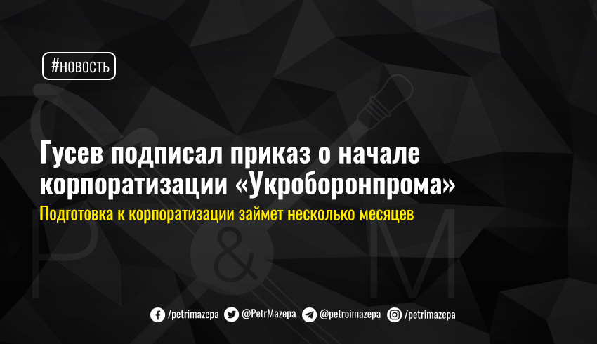 Генеральный директор «Укроборонпрома» Юрий Гусев подписал приказ о начале корпоратизации концерна.