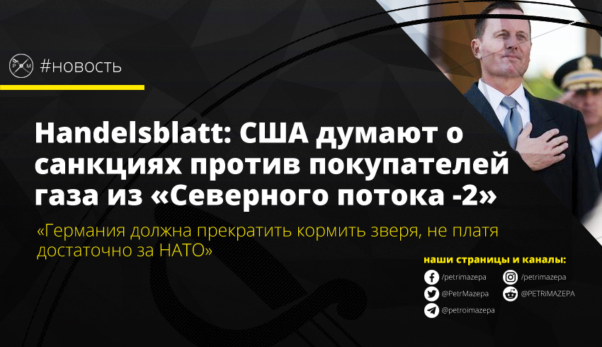 • В январе 2019 года Ричард Гренелл уже предупреждал немецкие компании, участвующие в строительстве «Северного потока-2», что они могут столкнуться с санкциями в случае дальнейшей работы над проектом.