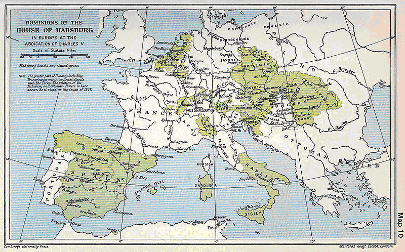На карте зеленым подсвечен «русский мир»… тьфу, владения Габсбургов, чтивших, кстати, духовные скрепы Святой инквизиции