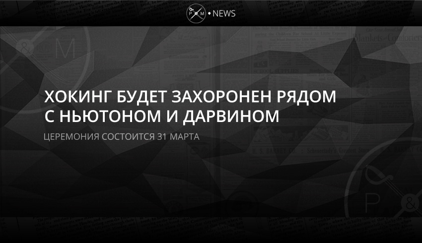 Прах Стивена Хокинга будет захоронен в Вестминстерском аббатстве, рядом с могилами Исаака Ньютона и Чарльза Дарвина. Похороны состоятся 31 марта. На них будут присутствовать родственники, друзья и коллеги Хокинга.