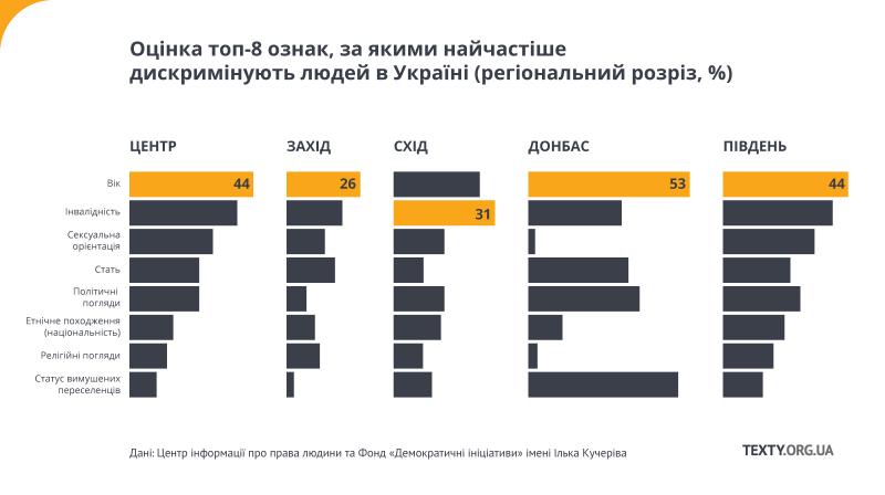 37% українців відповідали соціологам, що в Україні найбільше дискримінують за ознаками віку (37%) та інвалідності (33%).