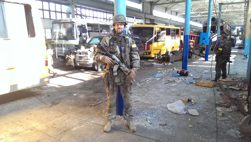 Я видел, как мои работали и как падали российские солдаты. Своих я готовил к бою и никаких маршей перед позициями российских войск мы и не думали делать. Чётко поставлена была задача: видите врага – стреляйте, разбираться будем потом. Это могут подтвердить все бойцы батальона. Для нас это был прорыв боем. И когда мой врач Стеблюк ездил потом и собирал раненых, ему командир российских ВДВ (который, кстати, молодец в том плане, что не отдал наших пленных ДНРовцам, а отдал их как раненых Красному Крест, и проконтролировал вывоз; поскольку ДНРовцы охотились за добровольцами) говорил, что нас там три дня ждали. Была отдана однозначная команда уничтожать всё в секторе огня. Но им тоже досталось. Там после боя «КамАЗами» вывозили и немало погибших российских солдат, грузовиками вывозили. Это же всё делалось параллельно с вывозом наших погибших. Мои пленные тоже рассказывали, что при них жаловались на большое количество погибших. Могу дать контакт, с командиром роты пообщаетесь. У меня двенадцать человек было в плену и рассказывали, что там какой-то чечен бегал, искал, кто там в ДЕПО сидел. Кричал, что «там моих двести братьев погибло». Чечены там точно были, когда были бои; они кричали «Аллах Акбар». И когда я ехал в школу в тот день, когда погиб командир батальона «Херсон», то тоже попал в засаду. И мы заехали тогда в детский сад к «Днепру», и там тоже до пяти часов шёл бой конкретно с чеченами. Мы их, в общем, неплохо покрошили там. Что не может не радовать.