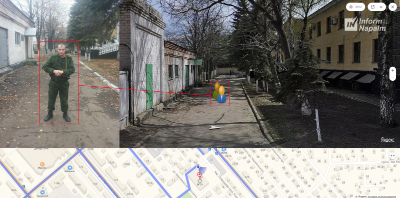 Волонтеры благодаря привязке к местности выяснили, что военнослужащий сделал это фото в Донецке. В оккупированном городе он так же сфотографировался неподалеку от военизированной горно-спасательной части, в здании которой ранее по данным разведывательного сообщества фиксировалось присутствие как минимум четырех подразделений ВС РФ.