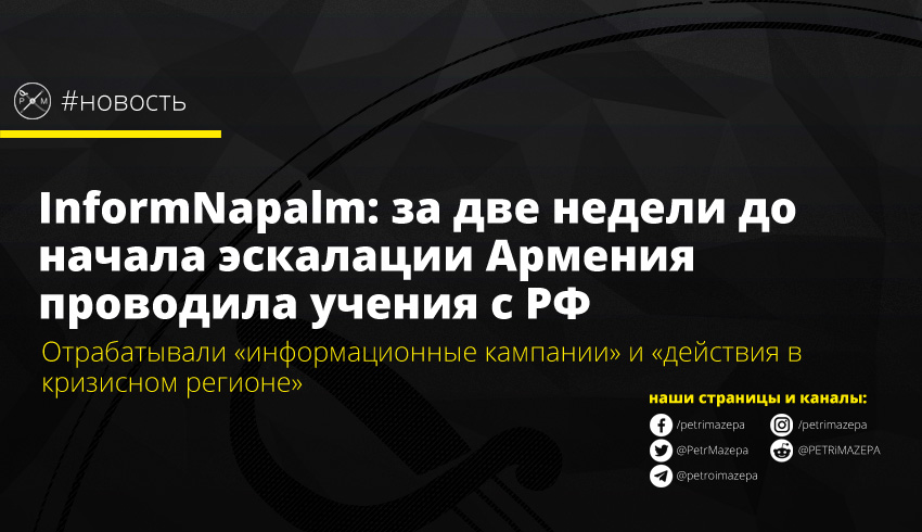 InformNapalm: за две недели до начала эскалации Армения проводила учения с РФ
