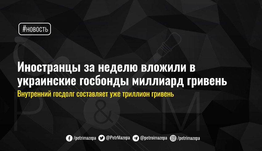 Иностранцы за неделю вложили в украинские госбонды миллиард гривень