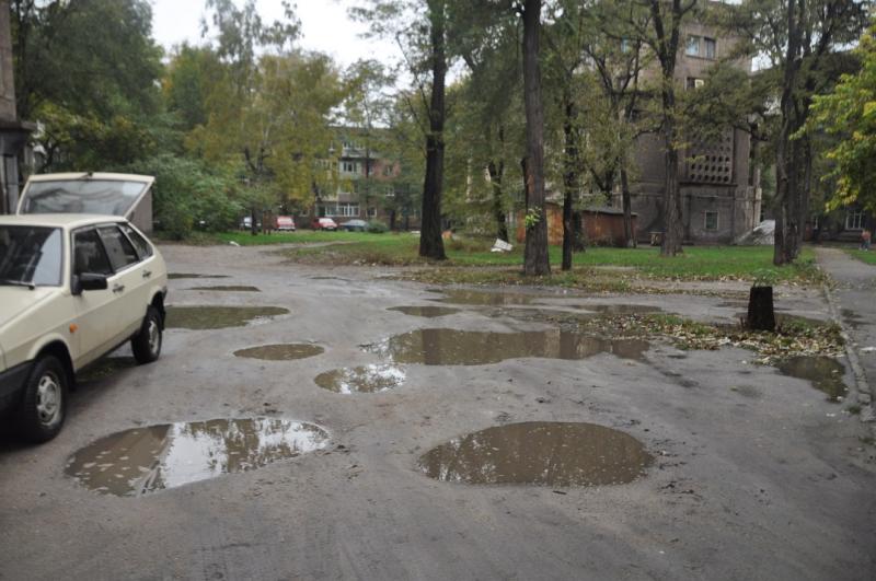 С отрытым грунтом в Запорожье вообще беда. Обычно это мелочи, на которые в городе редко обращаешь внимание. Но не здесь. Почти во всех дворах на земле нет никакого покрытия, так что во время дождя приходится топтаться по колено в грязи.