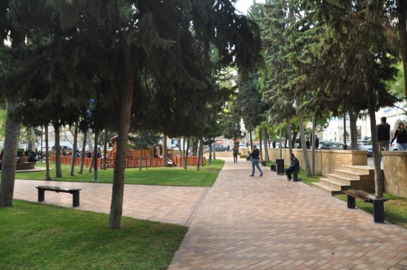 В ещё одном промышленном городе Баку лавочек в парках тоже полным-полно.