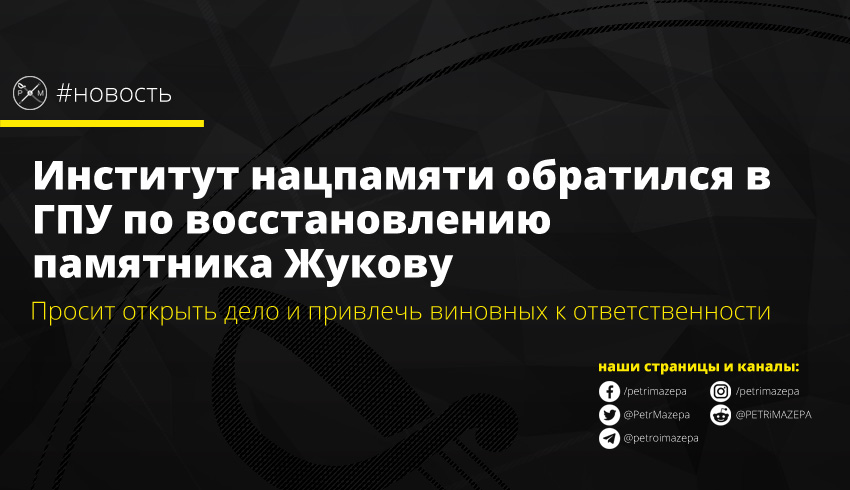 В связи с тем, что в Харькове накануне восстановили памятник советскому военачальнику маршалу Георгию Жукову, Украинский институт национальной памяти обратился в Генеральную прокуратуру и Нацполицию. В институте просят ГПУ разобраться в ситуации, которая сложилась, наказать виновных и демонтировать памятник.