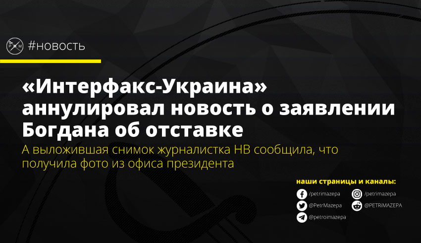 «Интерфакс-Украина» аннулировал новость о заявлении Богдана об отставке