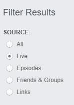 Как и в Facebook, к результатам поиска можно применить фильтр «Live», который выведет как текущие, так и отправленные в архив прямые трансляции.