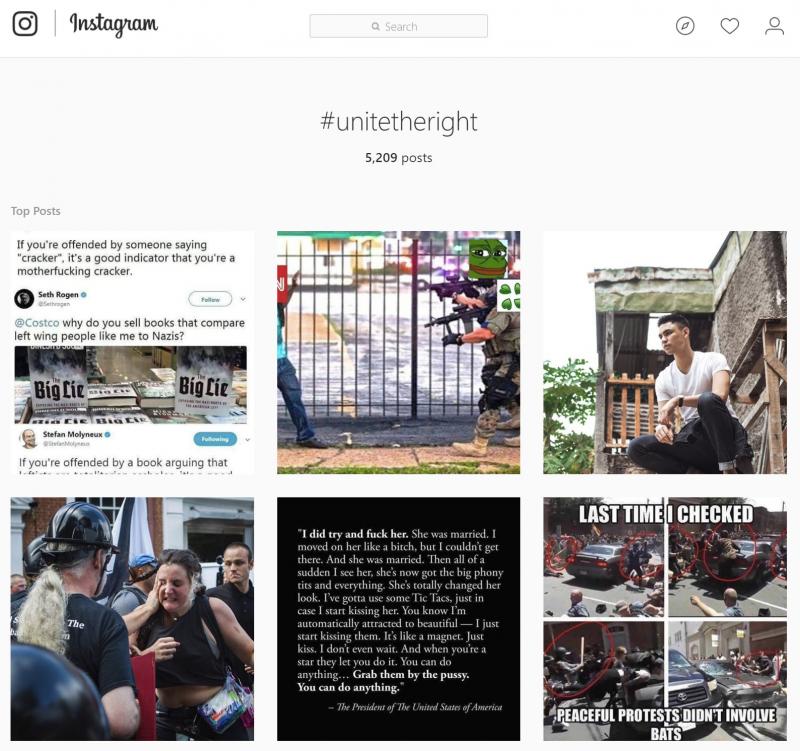 В день протестов в этой социальной сети наверняка было размещено относительно много видео со словом «Charlottesville», однако через Google нам удалось обнаружить только пять штук. К сожалению, поиск видео в Instagram — сложная задача. Возможно, полезнее будет провести поиск по видео из Instagram, упомянутым на других платформах, например в Twitter, чем искать эти материалы в самом Instagram.