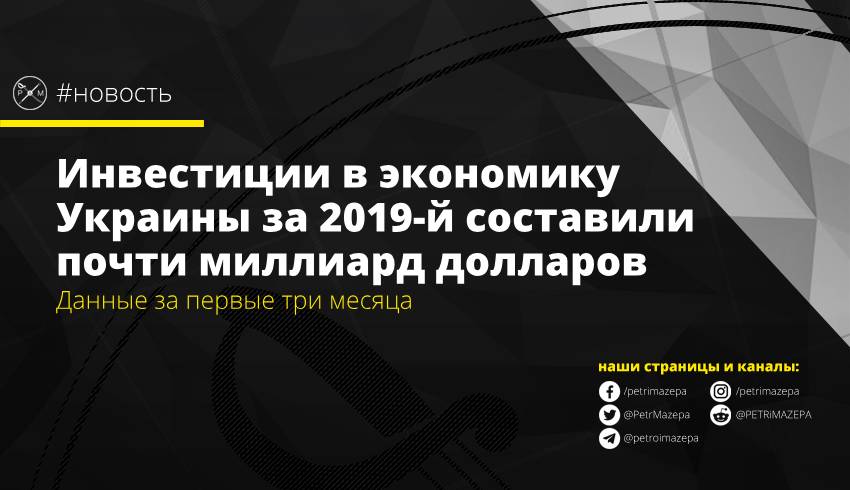 Инвестиции в экономику Украины за 2019-й составили почти миллиард долларов