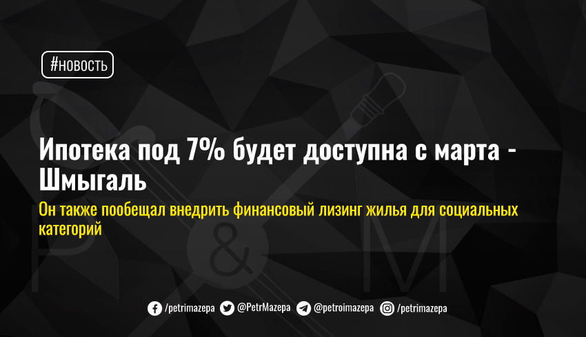 Ипотека под 7% будет доступна с марта - Шмыгаль