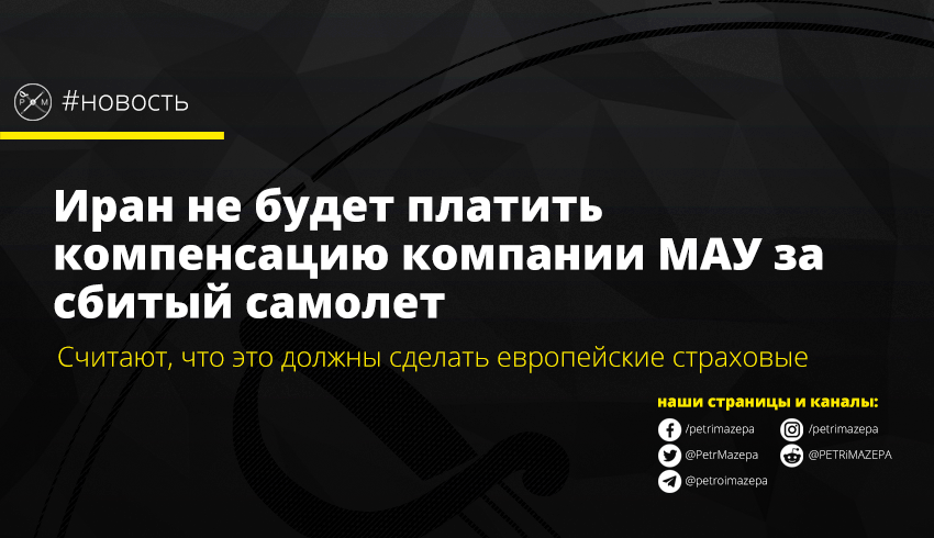 Глава Центральной страховой организации Ирана Голамреза Сулеймани заявил, что Иран не обязан компенсировать стоимость сбитого лайнера авиакомпании МАУ. При этом, семьям погибших иранская сторона все еще обещает выплатить компенсации.