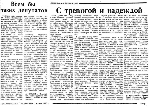 Не вносит ясности в историю и скан статьи за подписью Берегового в «Енакиевском рабочем» от 1 марта 1990 года, в которой тот в несвойственном ему стиле (судя по книгам) рассказывает, как познакомился с 27-летним Виктором Януковичем (то есть речь идёт примерно о 1977–78 годах) и дальше что-то с ним совместно делал (из статьи непонятно, что именно). Это — классическая рекламная заметка о политическом деятеле местного масштаба от имени известного человека, в таких обычно приводят списки общих полезных дел, если они были. Береговой (а на самом деле это был, скорее всего, пиарщик Януковича, согласовавший с ним свой текст) не приводит ни одного факта, ограничиваясь общими словами. Он не говорит ни о дружбе с Виктором, ни о знакомстве с его отцом, хотя это сильно расцветило бы биографию депутата. Впрочем, если это вообще достоверный скан, то мы имеем хотя бы факт знакомства Георгия Берегового и Виктора Януковича.