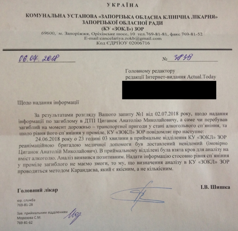 После этого Гришин устраивает наезд на журналистов и выкладывает ответ областной больницы, что в крови погибшего был алкоголь.