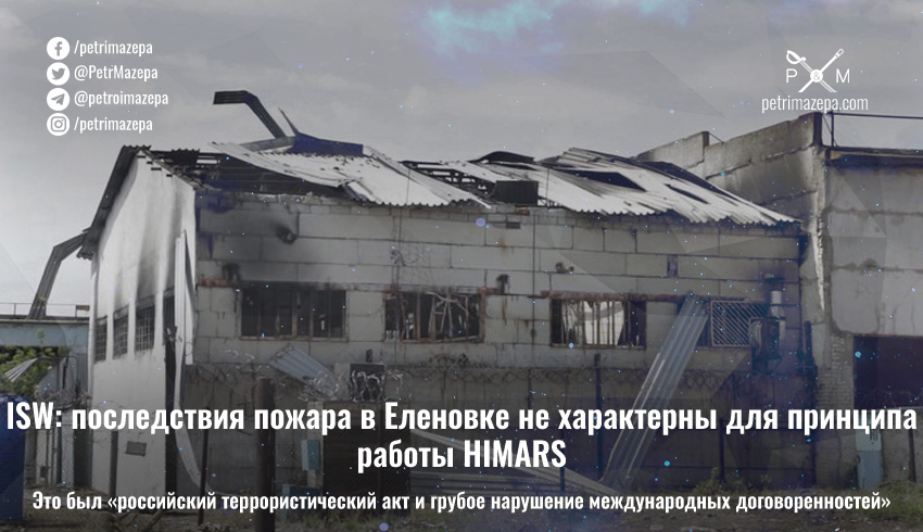 «Информационное агентство "РИА Новости", спонсируемое Кремлем, опубликовало видео из центра содержания под стражей, на которых видны повреждения от пожара, но не те повреждения, которые мог бы нанести удар HIMARS. Пропагандисты обнародовали кадры фрагментов якобы ракеты HIMARS, но не предоставили доказательств того, что фрагменты были обнаружены в Еленовке», — пишет ISW.