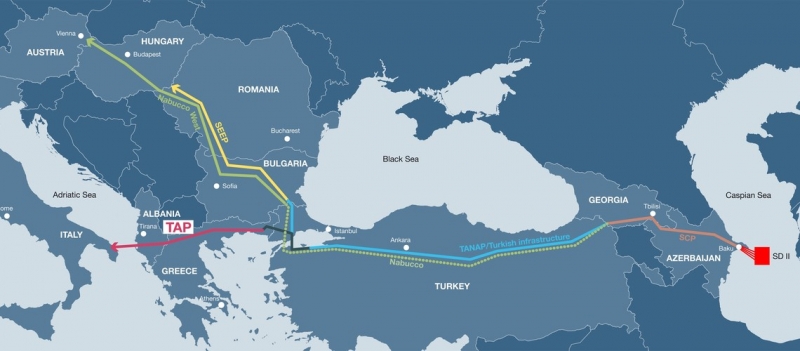 TAP является европейской частью «Южного газового коридора», начало поставок по которому планировалось в 2020 году. Газ будет идти из Азербайджана через Грузию и Турцию. Из Турции будет выход на север в Болгарию и на запад – в Грецию, откуда через Албанию газ будет доходить до Италии. Начальная мощность TAP составит 10 млрд кубометров, а стоимость строительства - 5,6 млрд евро. Инвестором выступает Trans Adriatic Pipeline AG, акционерами которой являются компании BP (20%), SOCAR (20%), Snam (20%), Fluxys (19%), Enagás (16%) и Axpo (5%), сообщает LB.ua.
