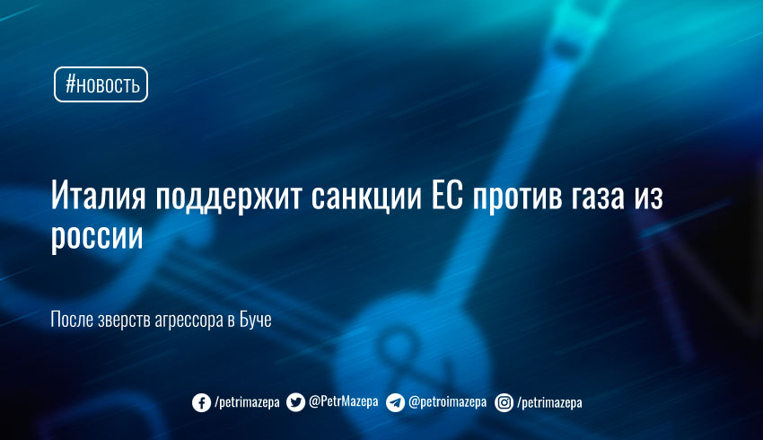 Министр иностранных дел Италии Луиджи Ди Майо заявил, что после зверств россиян в Буче его страна поддержит санкции ЕС против россиийского газа — несмотря на то, что около 40% импорта газа в Италию идет именно из рф.