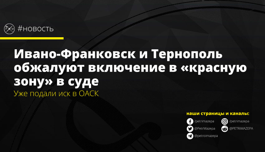 Об этом сообщил в Facebook городской голова Ивано-Франковска Руслан Марцинкив. Он отметил, что решение о пересмотре включения города в «красную зону» пересмотрено не было, поэтому власти Ивано-Франковска подали иск в Окружной административный суд Киева. По его словам, к  этому иску присоединился в том числе и Тернополь, а ранее Марцинкив заявлял что к исковым претензиям хотели бы присоединиться Калуш и Коломия.