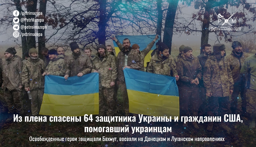 Из плена удалось освободить 64 защитника Украины, которые воевали на Донецком и Луганском направлениях, участвовали в обороне Бахмута, и одного гражданина США, который помогал украинцам.
