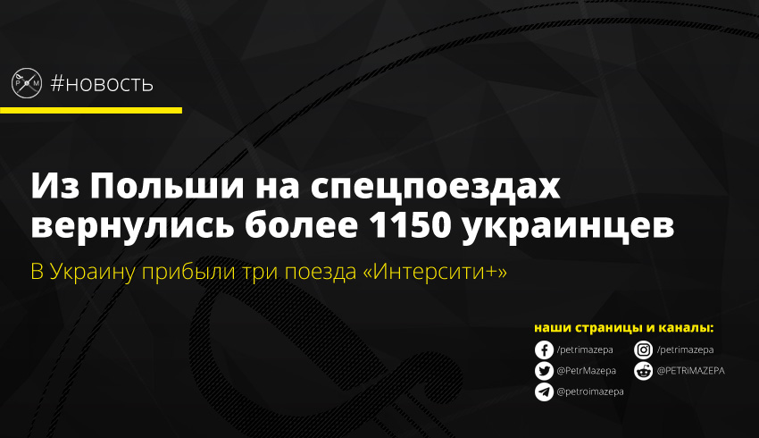 На эвакуационных поездах «Интерсити +» сообщения Перемышль - Киев в Украину уже вернулись более 1150 граждан.