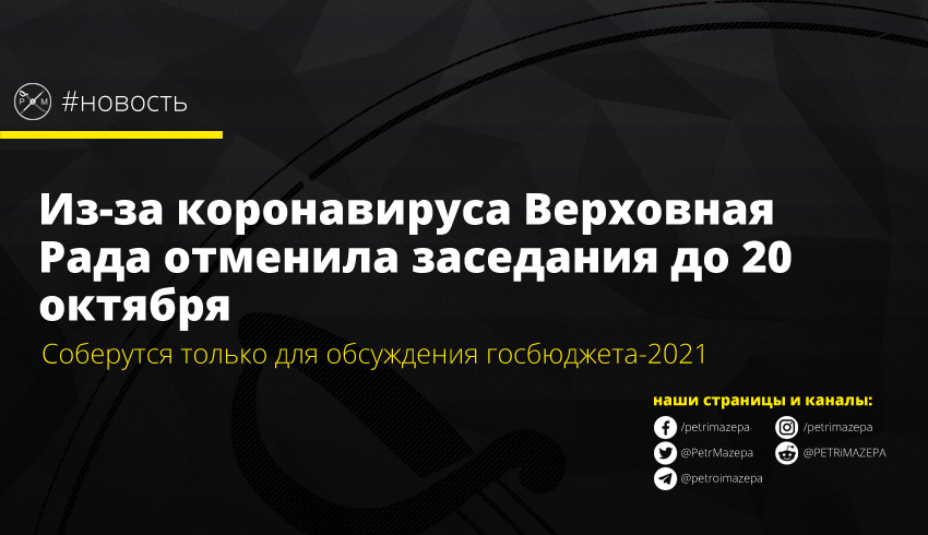Поэтому следующее заседание ВР состоится только 20 октября и будет посвящено проекту бюджета-2021.