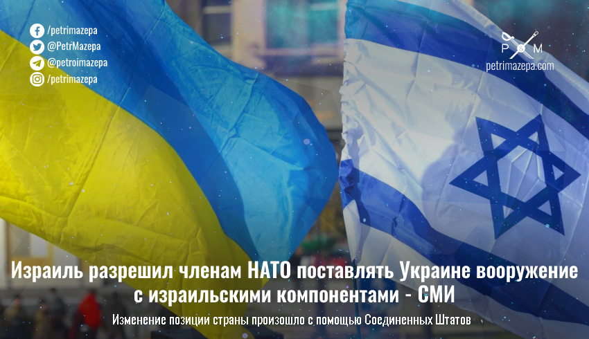 Израиль разрешил странам-членам НАТО предоставлять Украине вооружение, содержащее изготовленные в Израиле компоненты. А также договорился о закупке «стратегических материалов» для Вооруженных сил Украины (ВСУ).