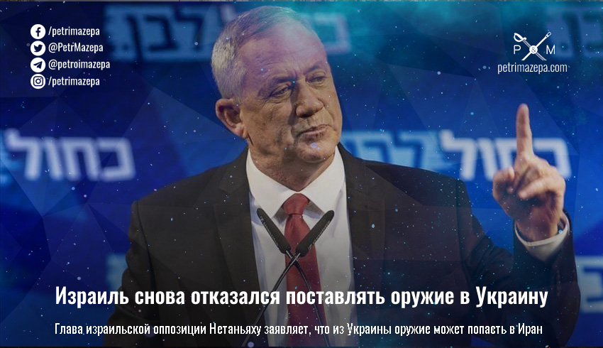 Министр обороны Израиля Бени Ганц в очередной раз исключил военную помощь Украине. К критике самой возможности военной помощи Украине активно подключился экс-премьер министр Израиля Биньямин Нетаньяху. А израильские СМИ пишут, что за срывом официальных переговоров Украины и Израиля стоит россия.