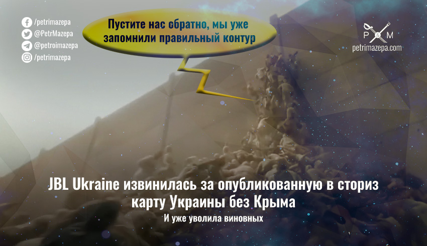 Представительство JBL на своей Instagram странице вчера ночью (около 23:30) опубликовали карту Украины без Крыма и части Донбасса в сториз. Ошибку оперативно исправили, а утром компания принесла извинения и сообщила, что виновные уже уволены.