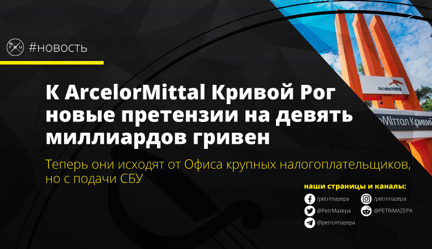 Сегодня глава Офиса крупных налогоплательщиков Евгений Бамбизов рассказал об итогах аудита ArcelorMittal Кривой Рог, который был начат в мае 2019 года. Сумма претензий к предприятию составила 9 млрд грн.