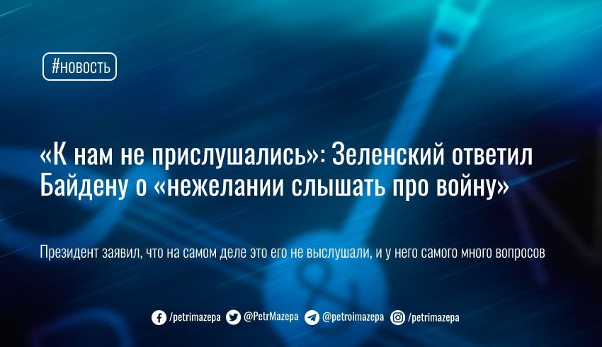 «К нам не прислушались»: Зеленский ответил Байдену о «нежелании слышать про войну»