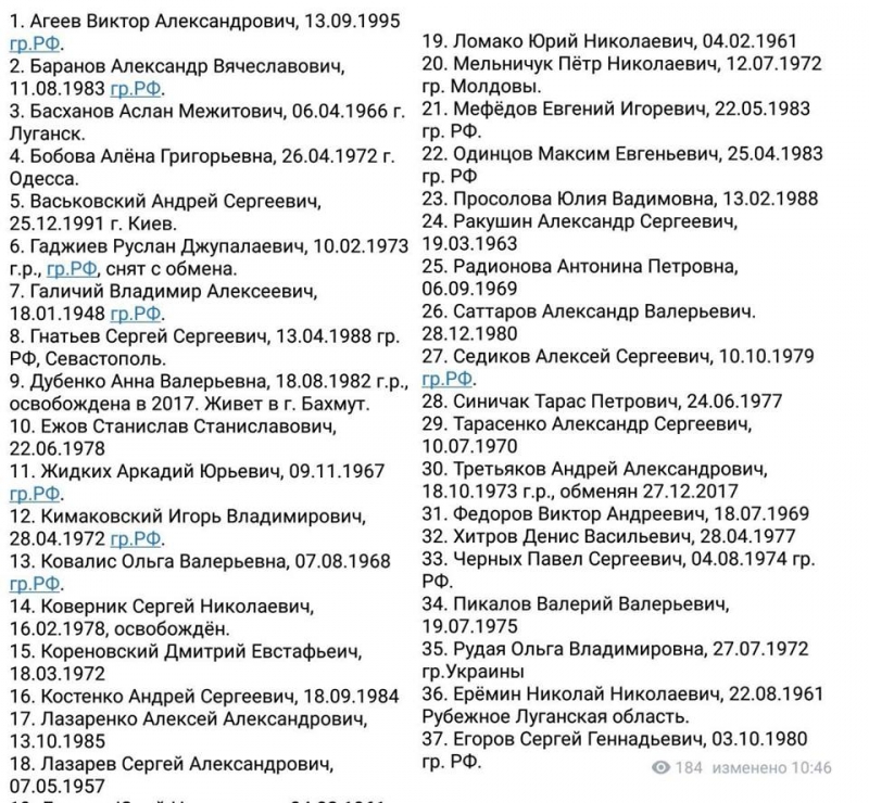 13:43. А вот кого Украина вернула России в обратном направлении. Полюбуйтесь, большая часть списка явно доказывает теорию Дарвина: настоящие пропущенные звенья в эволюции.
