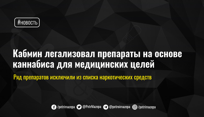 На портале Кабинета министров опубликовано постановление №324 от 7 апреля, которым из списка наркотических средств, психотропных веществ и прекурсоров исключены некоторые препараты на основе каннабиса.