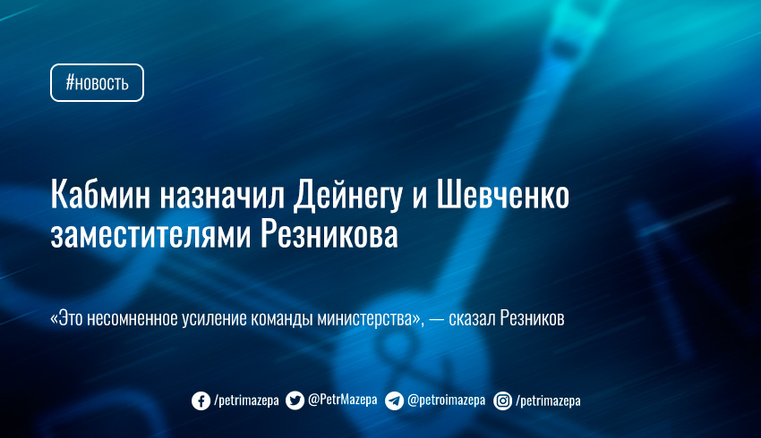 Дейнега назначен замминистра по вопросам цифрового развития, цифровых трансформаций и цифровизации, Шевченко — по вопросам евроинтеграции.