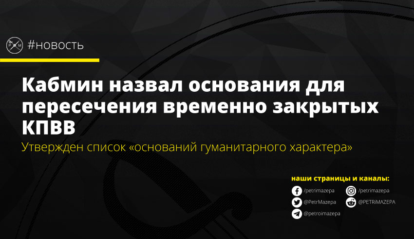 Кабинет министров Украины утвердил список оснований гуманитарного характера, позволяющих пересекать КПВВ в случае временного прекращения их работы.