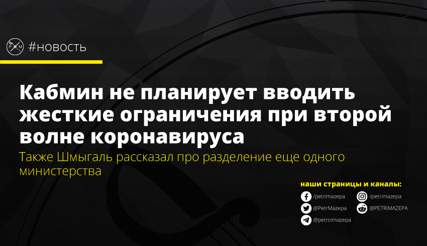Премьер-министр Украины Денис Шмыгаль сообщил, что Правительство не будет рассматривать внедрение жестких ограничительных мер в случае второй волны распространения коронавируса. Упор в противодействии COVID-19 планируют сделать на адаптивный карантин и локализацию всплесков заболевания.