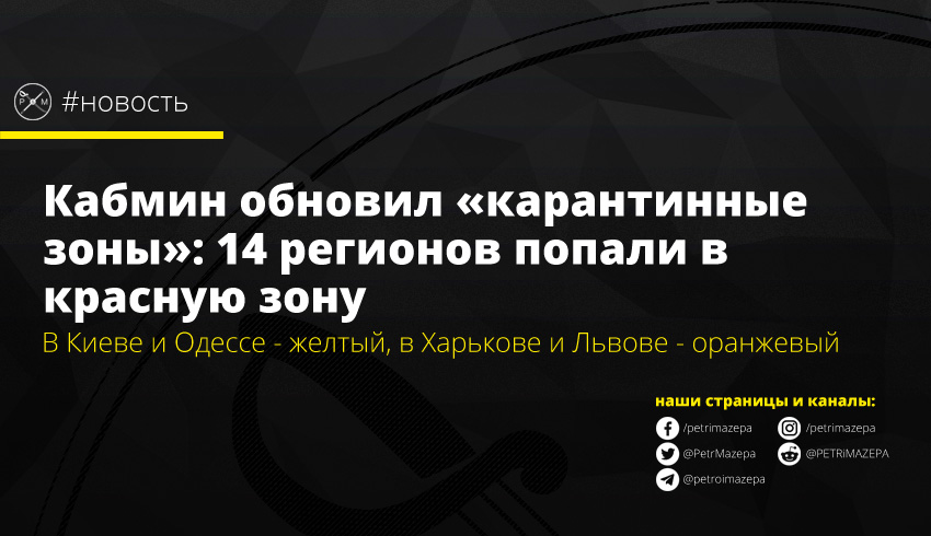 Кабмин обновил «карантинные зоны»: 14 регионов попали в красную зону