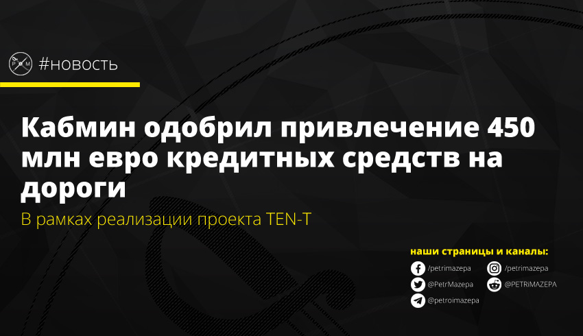 На сегодняшнем заседании правительства было одобрено привлечение кредита на дороги, сообщил народный депутат Алексей Гончаренко. Проект Трансъевропейская транспортная сеть (TEN-T) предусматривает создание к 2030 году новой транспортной системы на территории ЕС. Согласно существующим планам, новая система объединит 94 морских и речных портов, 38 международных аэропортов и около 15 тыс км скоростных железных дорог.