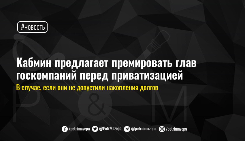 Кабинет министров ввел в типовой договор с руководителем государственного предприятия пункт о вознаграждении за содействие приватизации.