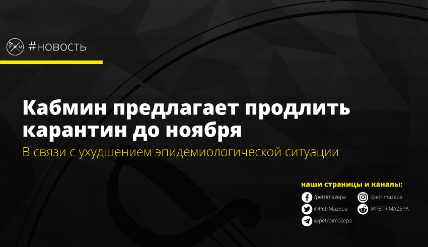Кабинет министров предлагает продлить карантин до 1 ноября в связи с ростом числа заболевших и негативной динамикой заболеваемости. Президент Владимир Зеленский поддерживает введение превентивных мер, однако настаивает, что карантин должен оставаться необременительным для предпринимателей.