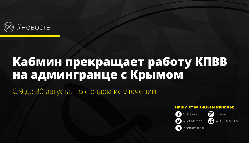 С 8:00 9 августа до 8:00 30 августа временно прекращается работа контрольных пунктов въезда на временно оккупированную территорию Крыма и Севастополя и выезда из нее, сообщает hromadske со ссылкой на министра Кабмина Олега Немчинова. Такое решение принято из-за того, что есть обоснованные подозрения по занижению оккупантами статистики заболевания коронавирусом на аннексированном полуострове.